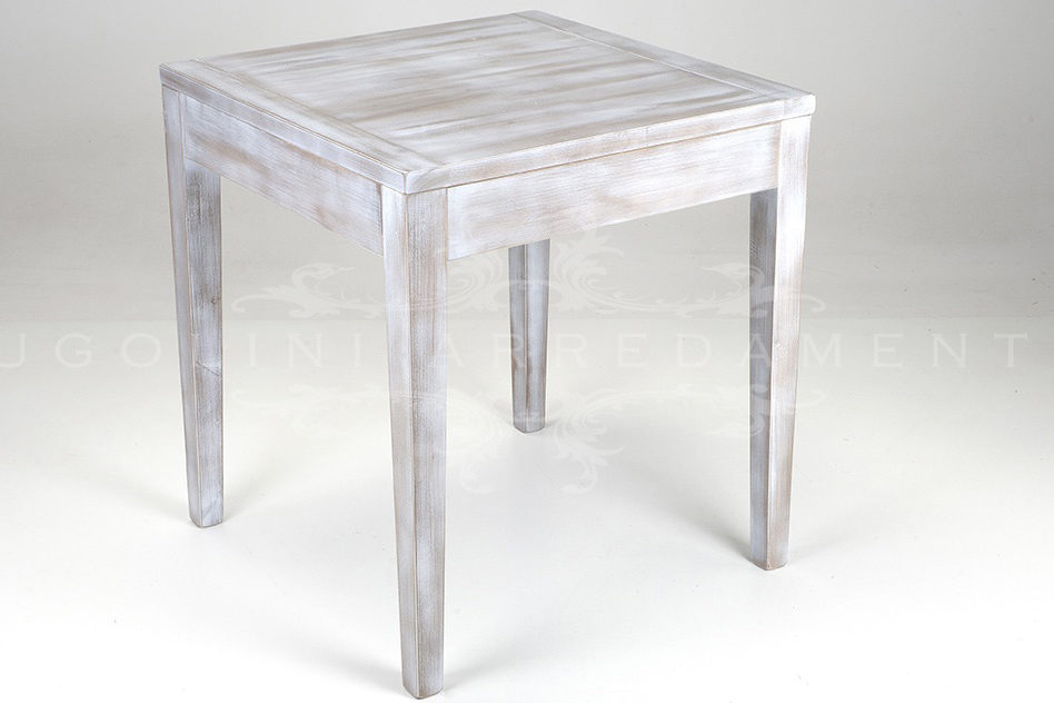 Tavolo vintage per enoteca, in legno di tulipier massello con gambe sagomate e piano quadrato.…